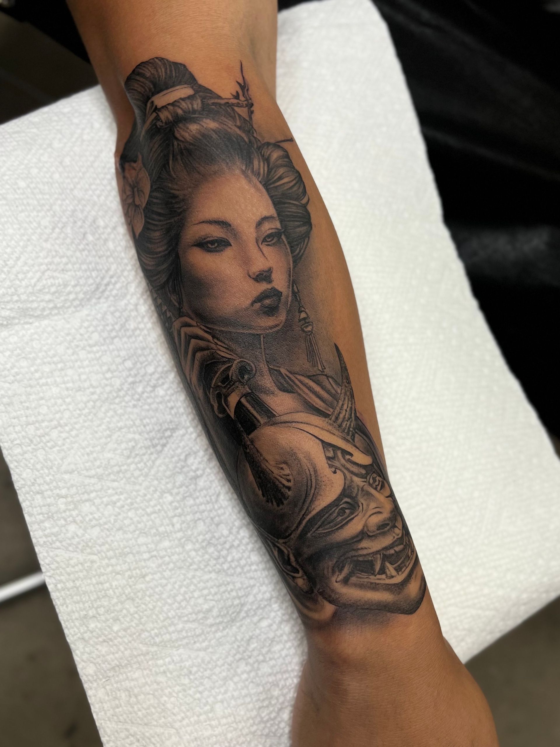 My favorite styles are black and grey realism and Japanese inspired art!